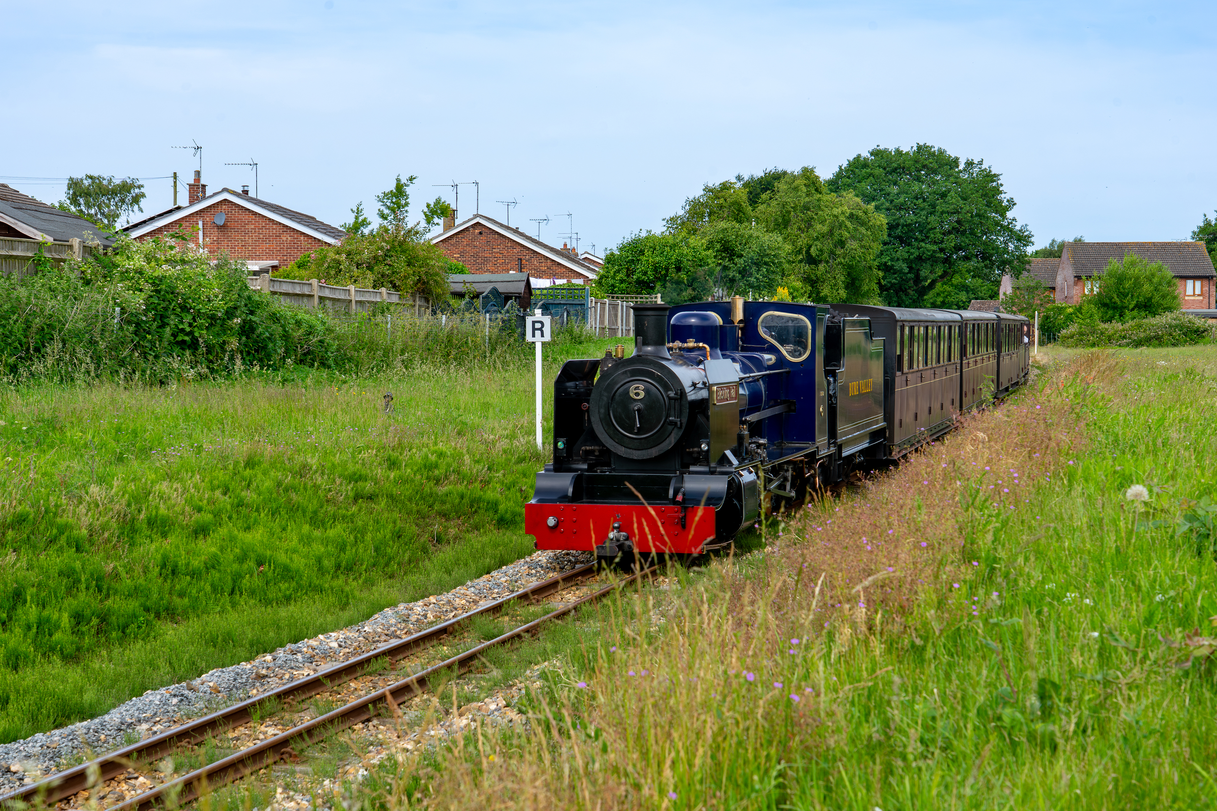 Locomotive No.6 Blickling Hall is a popular sight on the Bure Valley Railway, combining heritage-inspired design with impressive performance. Visitors can often see her in action hauling carriages across the Norfolk countryside.